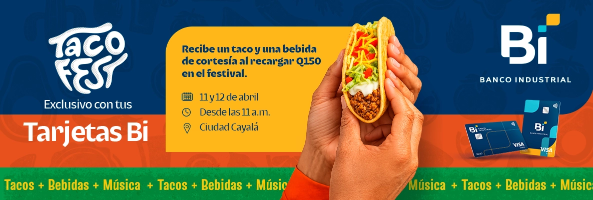 ¡No te pierdas esta fiesta de sabor y diversión! Ven con tu familia y amigos y vive una experiencia inolvidable en el Festival del Taco 2026, gracias a tus Tarjetas Bi.
